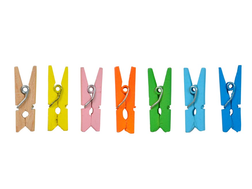 Barevné, dřevěné dekorační kolíčky. Vhodné na kreativní tvoření, na připnutí fotky nebo dokumentu.