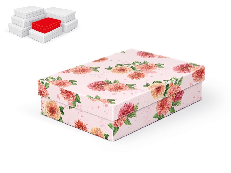 Dárková krabice s květinovým motivem. Ideální pro slavnostní příležitosti, jako jsou oslavy, svatby nebo jen pro uložení různých drobností. Dodáváme pouze v setu 7 dárkových krabiček, který obsahuje náhodný mix květinových motivů a různých velikostí. Při vložení produktu do košíku se automaticky vloží celý set, tak budete mít vždy kompletní balení.
