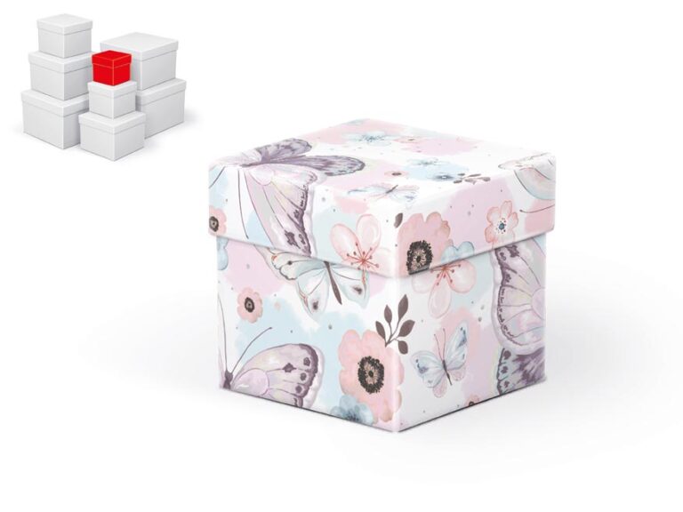 Dárková krabice s motivem motýlů a květů. Vhodná ke slavnostním příležitostem, pro zabalení dárků na oslavy nebo jen tak, k uschování různých drobností.Dodáváme pouze v setu 8 dárkových krabiček, které jsou ve stejném designu, ale v různých velikostech. Při vložení do košíku se automaticky vloží i ostatní krabičky, tak aby jste měli v košíku vždy celý, kompletní set.