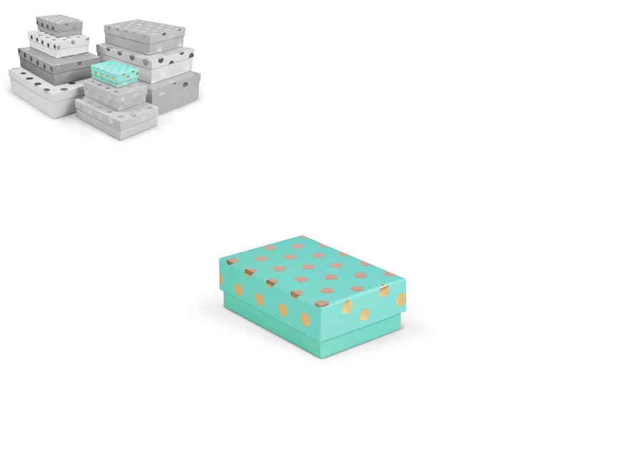 Dárková krabice v mixu barev se zlatými puntíky. Vhodná pro slavnostní příležitosti, dekorativní účely, balení osobních darů nebo k uschování různých drobností. Při vložení jedné krabičky do košíku se automaticky přidá celá sada, která zahrnuje krabičky s různými designy a velikostmi. Tato variabilita zaručuje, že budete mít krabičky vhodné pro různé příležitosti a typy dárků. Krabičky jsou elegantně navrženy a ladí k sobě svými barvami a vzory, čímž vytvářejí harmonickou sadu ideální pro každou příležitost.