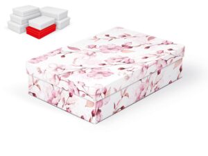 Dárková krabice s designem třešňových květů. Vhodná ke slavnostním příležitostem, pro zabalení dárků na oslavy, svatby nebo jen tak, k uschování různých drobností. Dodáváme pouze v setu 7 dárkových krabiček, které jsou ve stejném designu, ale v různých velikostech. Při vložení do košíku se automaticky vloží i ostatní krabičky, tak aby jste měli v košíku vždy celý, kompletní set.
