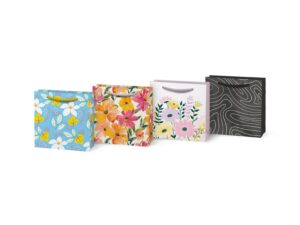 Tato dárková taška v mixu motivů přináší originální design – ať už jemný květinový vzor nebo elegantní černobílou kresbu. Je ideální na drobné překvapení, šperk nebo malý dárek, který si zaslouží stylové balení.