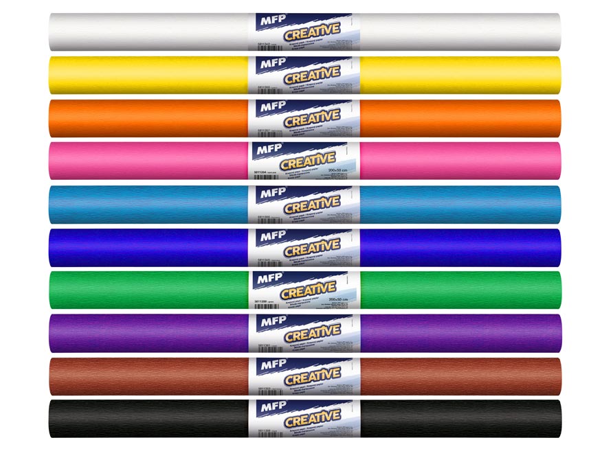Krepový papír jednobarevný. Nabízíme krepové papíry v různých barvách. Tvoření krepovým papírem je jednoduché a můžete si udělat krásnou výzdobu jak do domu, tak i na různé oslavy či do školních místností.