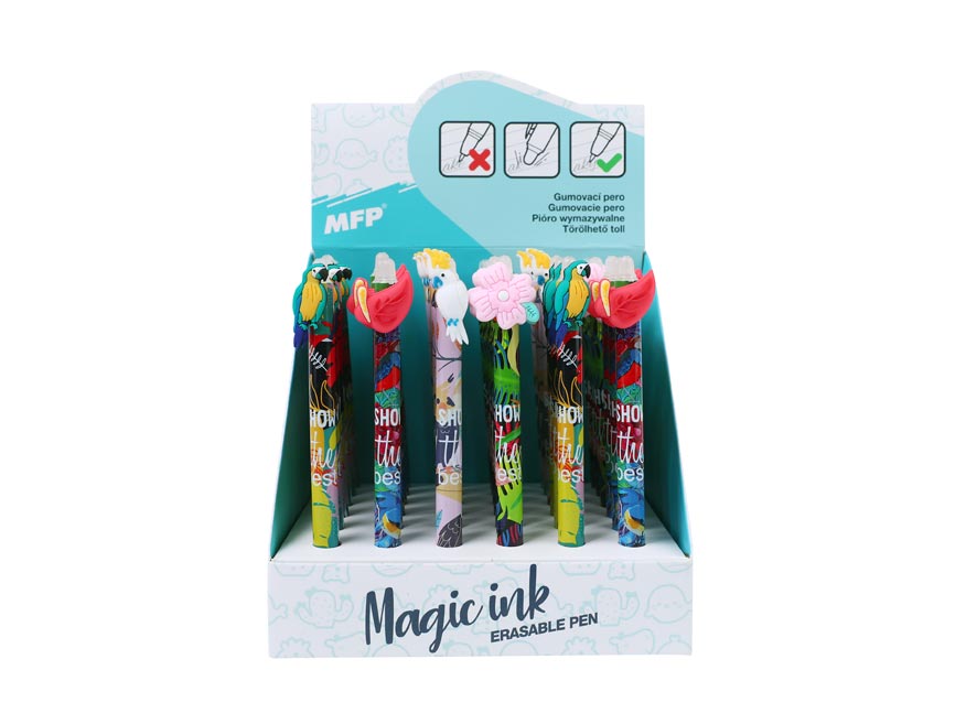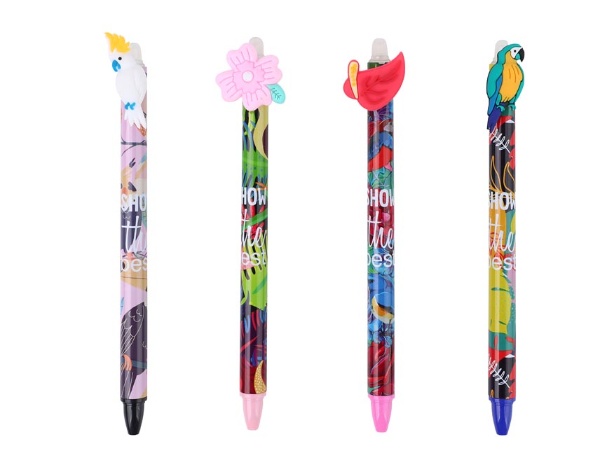 Gumové kuličkové pero s exotickými motivy a jemným hrotem o tloušťce 0,5 mm nabízí možnost snadného mazání díky speciálnímu inkoustu, který lze vymazat pomocí integrované gumy na konci pera. Je ideální pro psaní poznámek, úkolů nebo zápisků do deníčků a plánovačů. Využití najde především ve škole či v kanceláři, kde oceníte možnost snadno opravit chyby bez potřeby korektoru.