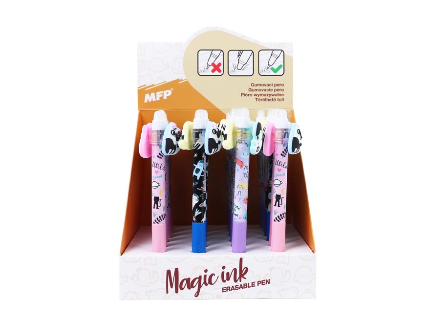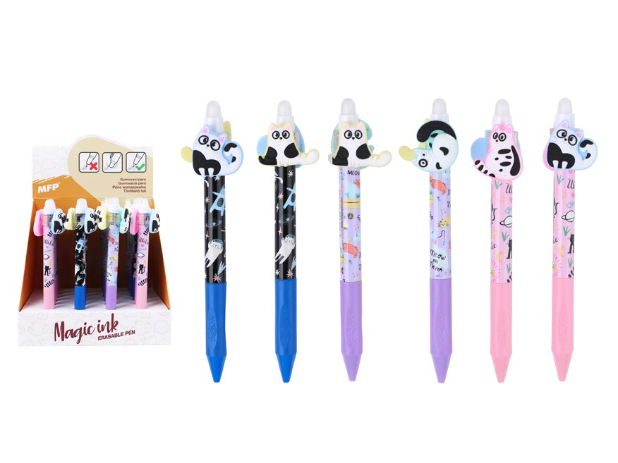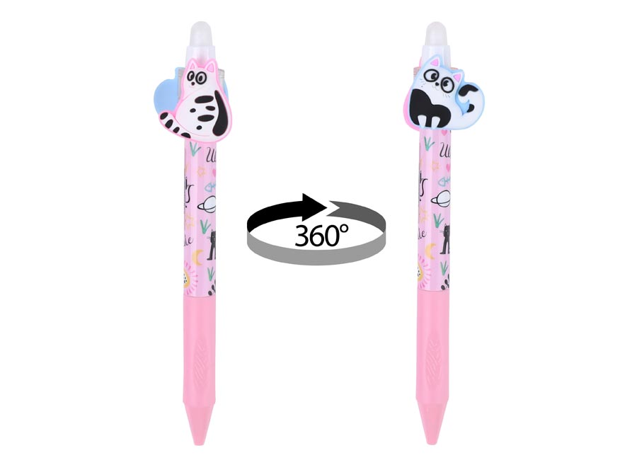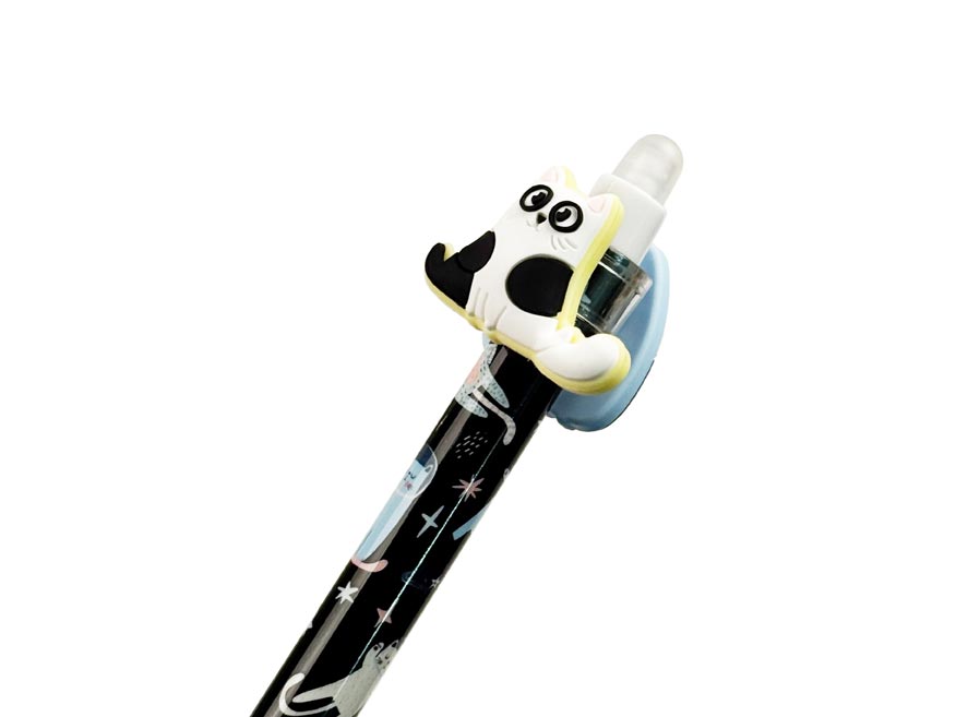 Gumovací kuličkové pero s motivem koček je skvělou volbou pro všechny milovníky těchto roztomilých mazlíčků. Pero má jemný hrot o tloušťce 0,5 mm, který zajišťuje precizní psaní, a je vybaveno speciálním inkoustem, který lze snadno vymazat pomocí integrované gumy na konci. Je ideální pro školní použití, psaní poznámek, úkolů nebo tvoření deníčků, kde oceníte možnost opravit chyby bez potřeby korektoru.