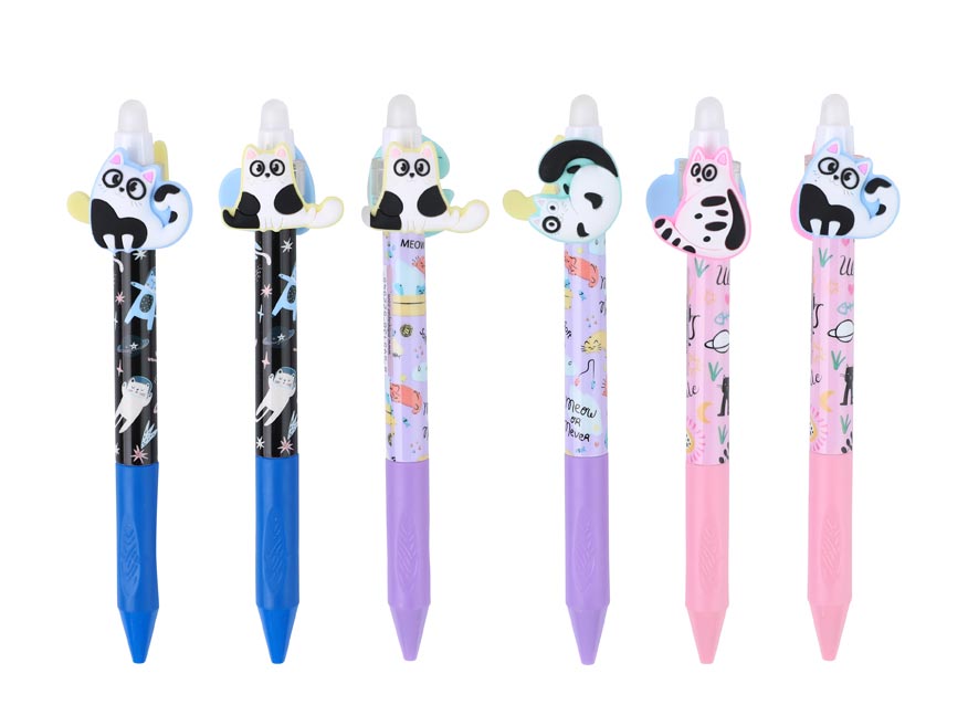 Kuličkové pero gumovací Twist Cats, 0,5, modré