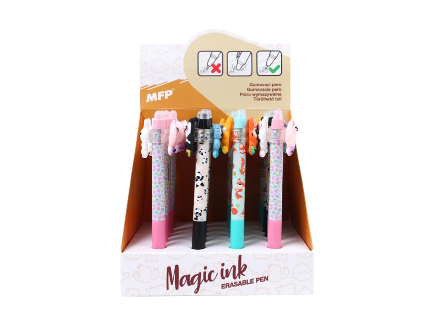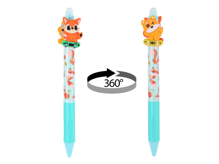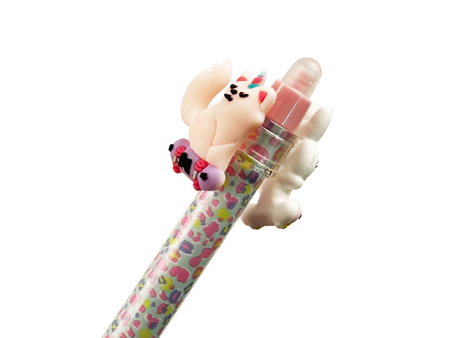 Gumovací kuličkové pero s motivy roztomilých zvířátek. Pero má jemný hrot o tloušťce 0,5 mm a speciální inkoust, který lze snadno vymazat pomocí integrované gumy na konci. Toto pero je ideální pro školní použití, psaní poznámek nebo tvoření deníčků, kde oceníte možnost opravit chyby bez potřeby korektoru. Kombinace funkčnosti a veselého motivu dělá z tohoto pera zábavný a praktický doplněk do každého penálu.