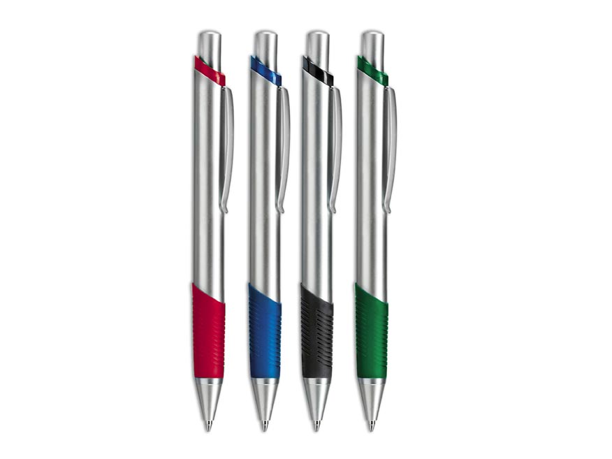 Kovové, kuličkové pero s klipem JUPITER. Pogumovaný úchyt zajišťuje, že pero nebude klouzat v ruce.