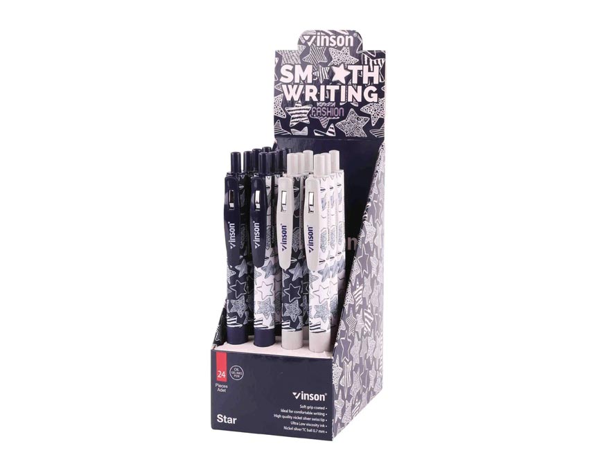 Plastové, kuličkové pero VSN 508 s klipem a inkoustem na olejové bázi. Tento olejový inkoust poskytuje velice komfortní psaní a rychle zasychá.