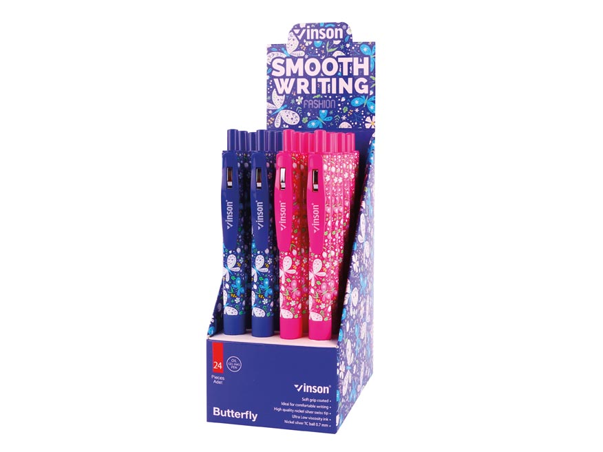 Plastové, kuličkové pero VSN 520 s klipem a inkoustem na olejové bázi. Tento olejový inkoust poskytuje velice komfortní psaní a rychle zasychá.