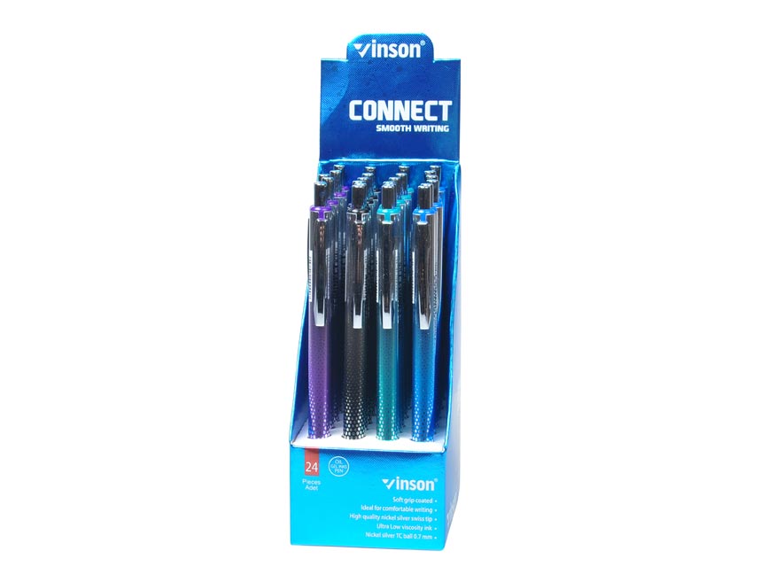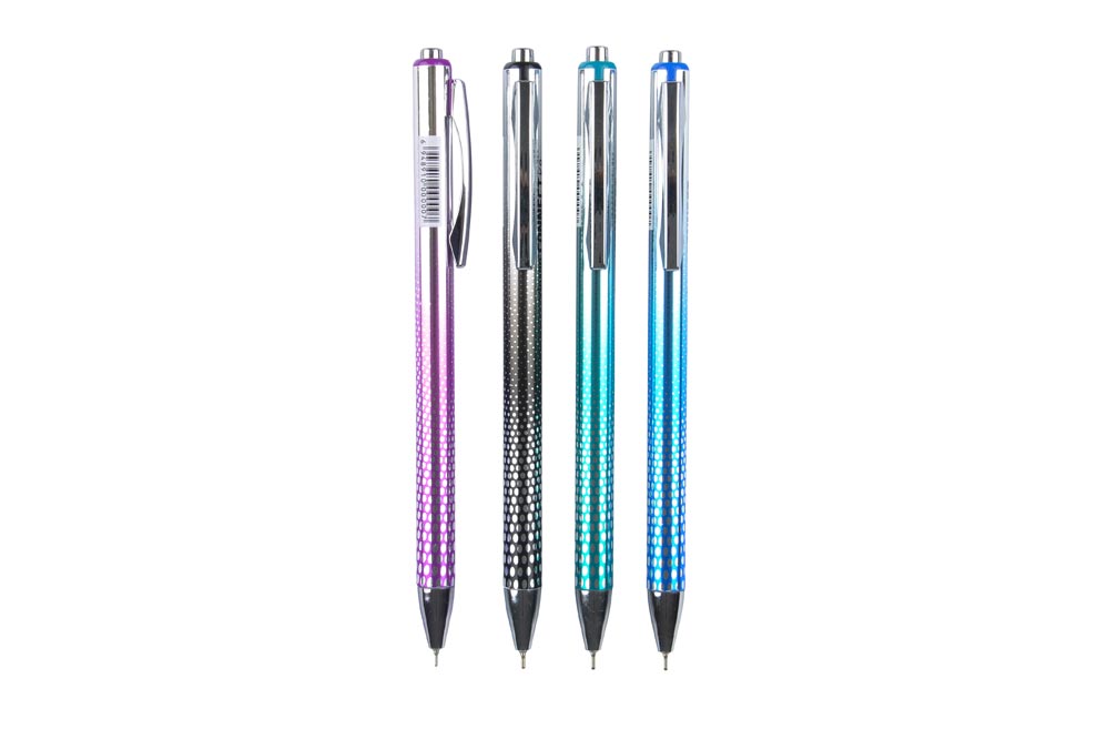 Kuličkové pero, dostupné v mixu barev, je opatřeno hrotem o tloušťce 0,7 mm, který zajišťuje jemné a přesné psaní. Pero je vybaveno náplní se speciálním olejovým inkoustem, který zlepšuje plynulost psaní a zároveň zamezuje rozmazávání. Design těla je zvýrazněn jemným vzorováním. Pero je také vybaveno kovovým klipem pro snadné přichycení na zápisníky nebo kapsy. Ideální pro každodenní použití v kanceláři, škole nebo domácnosti.