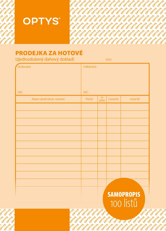Skladem Expedujeme do 24 hodin Prodejka za hotové A5, samopropisovací, 100 listů Prodejka za hotové tiskopis splňuje všechny platné požadavky zákona o DPH samopropisovací nečíslovaná formát 150 Kč 5 skladem Prodejka za hotové A5, samopropisovací, 100 listů množství Přidat do košíku