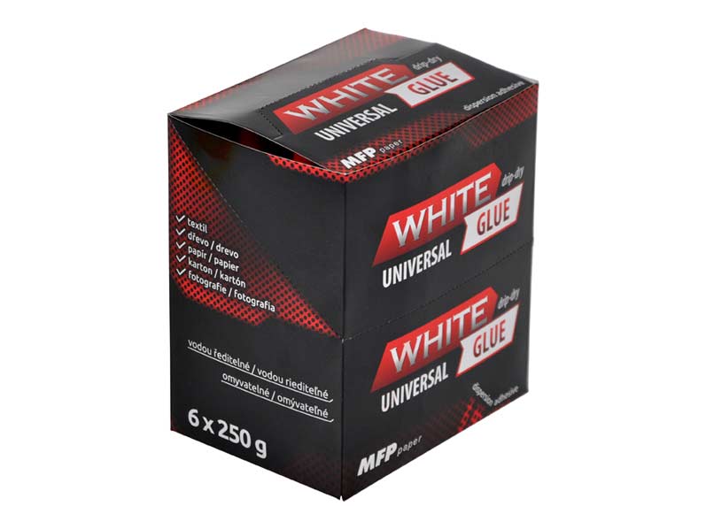 Disperzní bílé lepidlo na papír, karton, textil, fotografie, dřevo, kůži, koženku a korek. Díky unikátnímu uzávěru Twist může zvolit libovolné dávkování lepidla. Na špičce lepidla je malý hřebínek který lepidlo rovnoměrně rozetře po ploše.