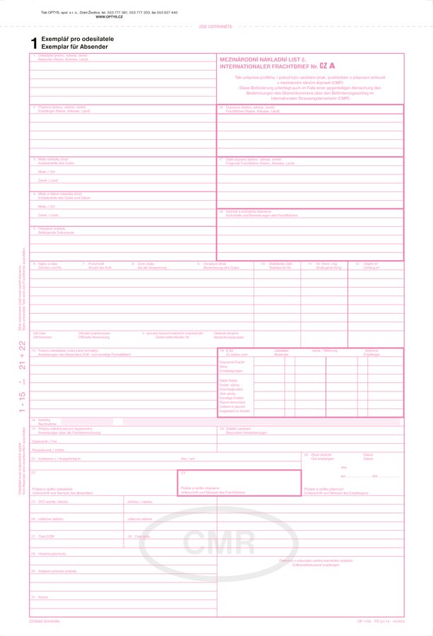 Mezinárodní nákladní list CMR A4, samopropisovací, 7 listů