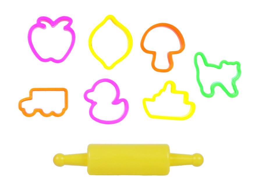 – 7 barev modelovací hmoty (růžová, oranžová, žlutá, červená, zelená, modrá, fialová)