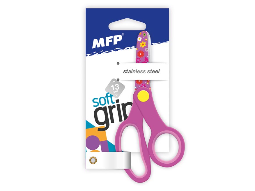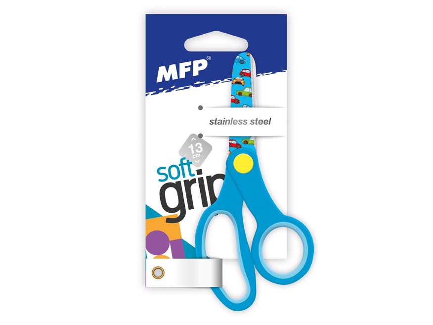 Dětské nůžky s barevným potiskem na nožích o velikosti 130 mm. Nůžky mají zaoblenou špičku, měkkou ergonomickou rukojeť a jsou vhodné do školy i domácnosti.