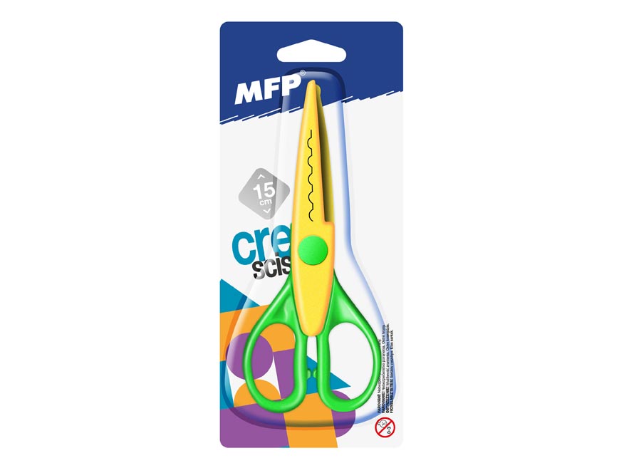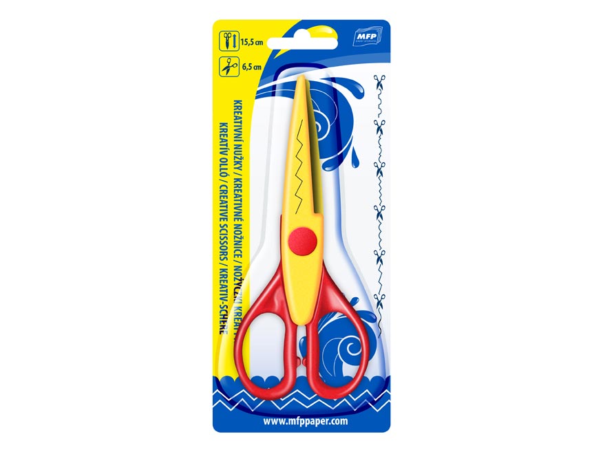 Barevné nůžky s ozdobnými střihy (mix barev a střihů). Nůžky jsou určeny pro děti ke kreativnímu tvoření. Ideální pro tvoření různých kreativních výstřižků.