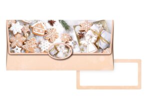Dárková obálka na peníze s vánočním motivem perníčků a uzavíratelnou klopou. Je ideální pro dárkové účely, kdy chcete peníze předat elegantním a vkusným způsobem. Uvnitř je kartička bez textu, na kterou můžete napsat věnování. BARVA: béžová MOTIV: perníčky Dodáváme v plastovém sáčku. Uvedená cena je za 1 ks.