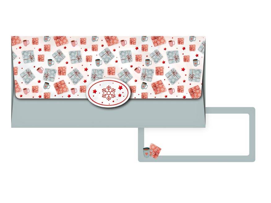 Dárková obálka na peníze s vánočním motivem a uzavíratelnou klopou. Je ideální pro dárkové účely, kdy chcete peníze předat elegantním a vkusným způsobem. Uvnitř je kartička bez textu, na kterou můžete napsat věnování.