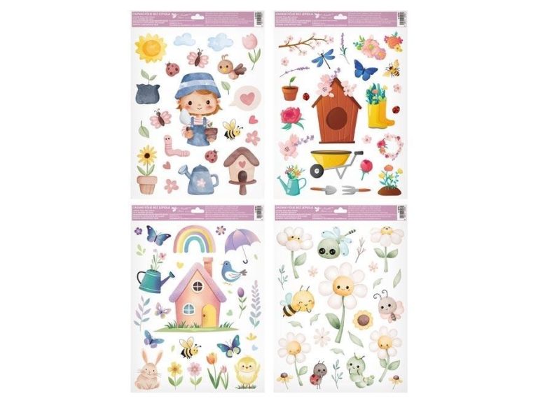 Okenní fólie s motivy zahrady potěší děti i dospělé – najdete na ní roztomilé postavičky, květiny, včelky, motýly, domečky i zahradní doplňky v jemných pastelových barvách. Fólie je opakovaně použitelná, snadno se aplikuje a po sejmutí nezanechává stopy na skle.