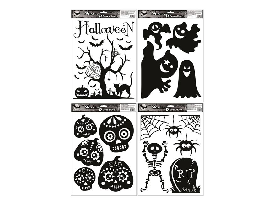 Dekorační okenní fólie s Halloweenskými motivy, jako jsou duchové, kostlivci, pavouci, netopýři a stylizované lebky, je ideálním doplňkem pro vytvoření strašidelné atmosféry a snadno přemění jakýkoli prostor na děsivé prostředí. Je perfektní pro dekoraci oken, zrcadel nebo jiných hladkých povrchů. Fólie je snadno aplikovatelná na okna a jiné hladké povrchy, nezanechává po odstranění žádné stopy a je opakovaně použitelná.