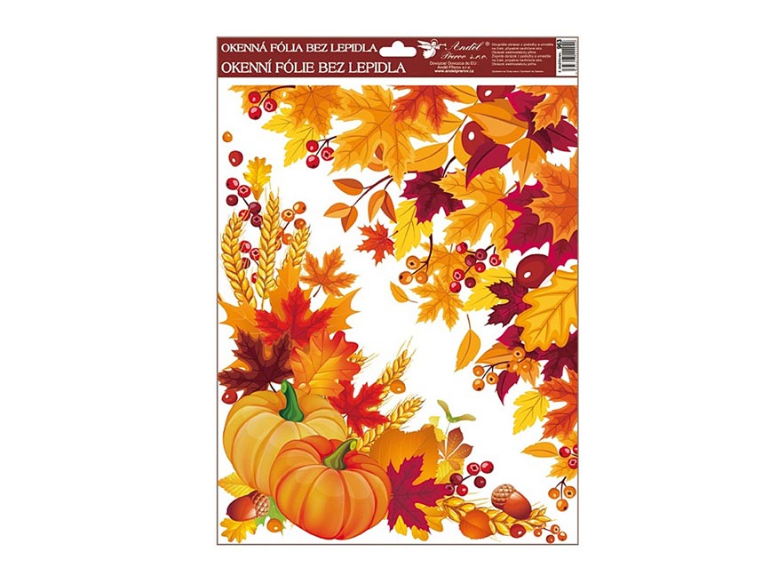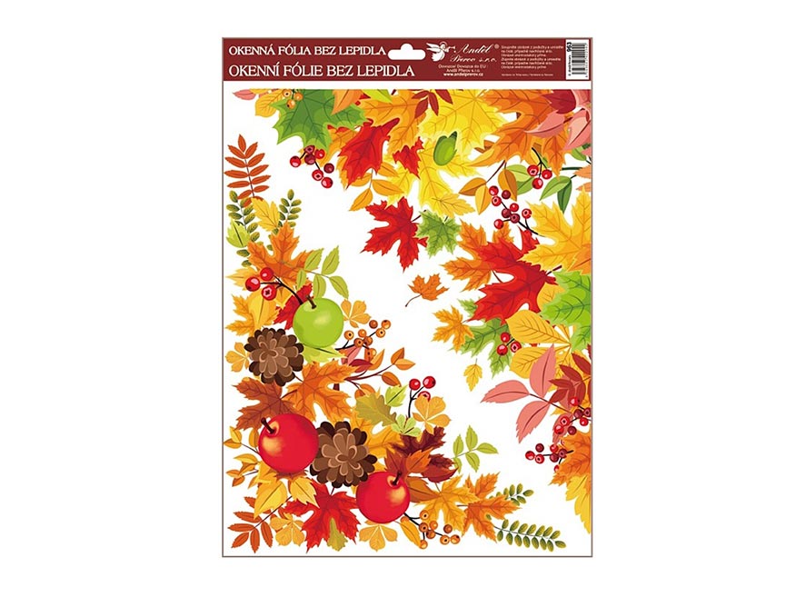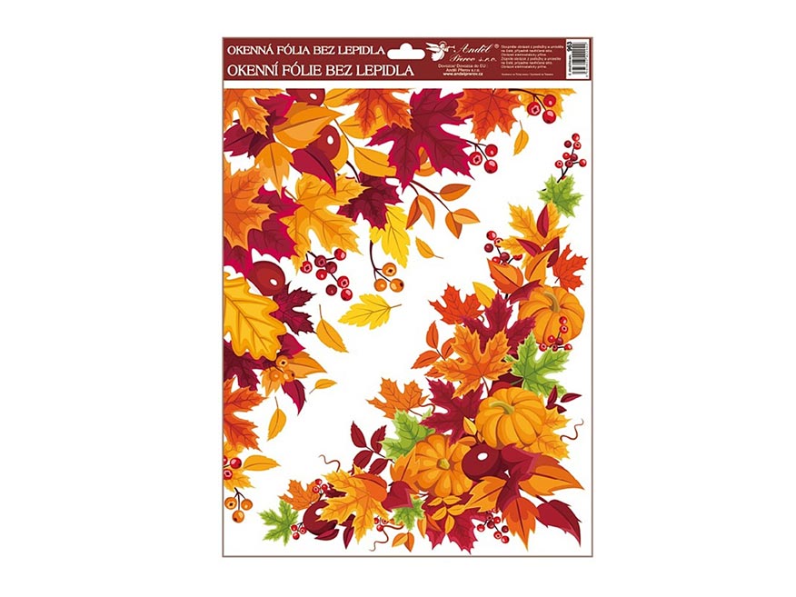 Dekorační okenní fólie v rohovém provedení s motivem podzimního listí. Rohové uspořádání fólií umožňuje efektivní a estetické umístění do rohů oken, čímž vytváří krásné přírodní orámování. Fólie je samolepicí, snadno aplikovatelná a po odstranění nezanechává žádné stopy, navíc je opakovaně použitelná.