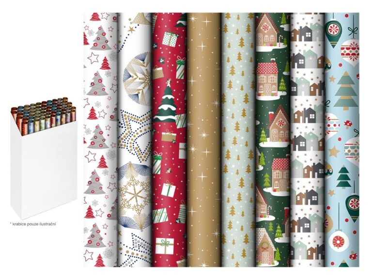 Vánoční celofánový sáček s motivem vánočních stromečků v mixu barev. Vyrobený z luxusního celofánu