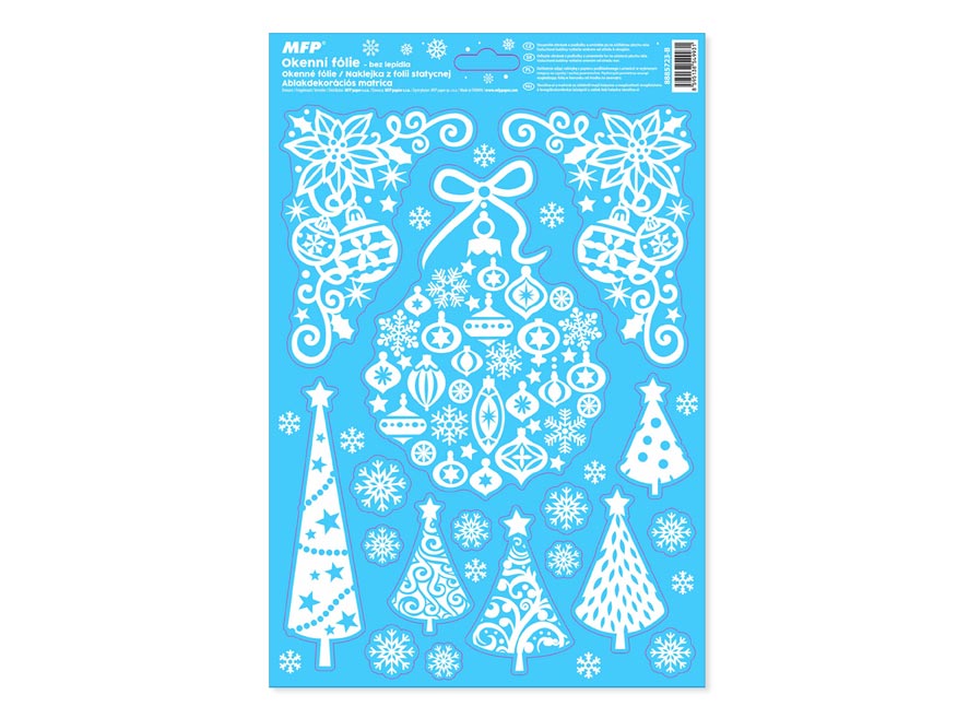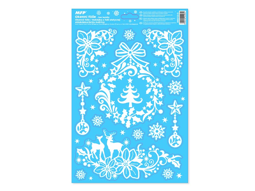 Vánoční okenní fólie bez lepidla s vánočními motivy (vločky, stromky, hvězdy). Vyzdobte si okno těmito krásnými samolepkami. Vytvoří Vám kouzelnou vánoční atmosféru. Vhodné jsou na jakékoli hladké plochy, například sklo, výlohy, zrcadla nebo kachličky. Čisté, bez lepidla a opakovaně použitelné.