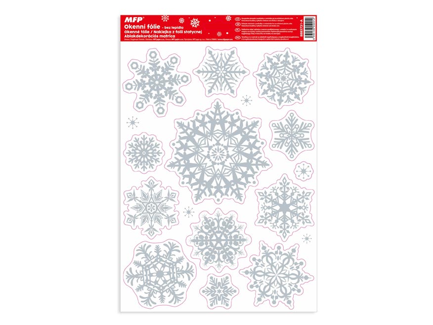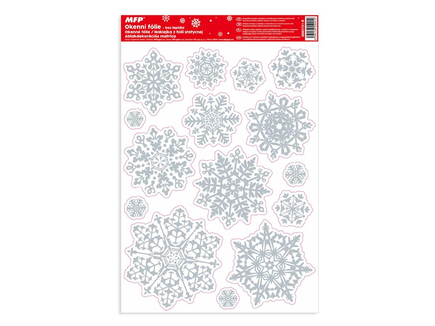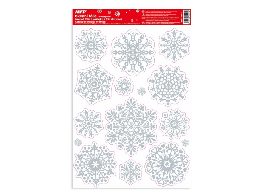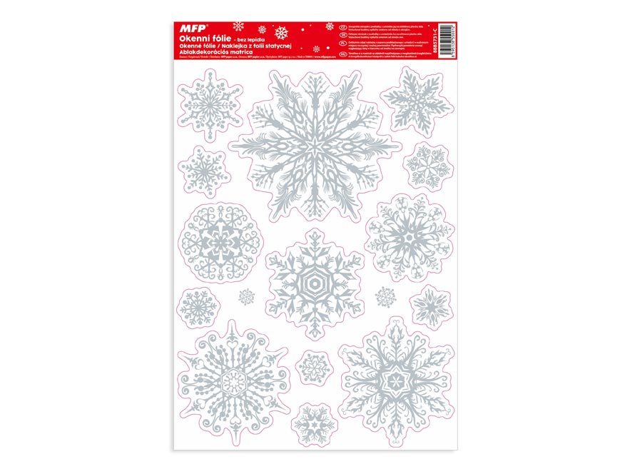 Vánoční okenní fólie s motivem sněhových bílých vloček s glitrem. Vyzdobte si okno těmito krásnými samolepkami. Vytvoří Vám kouzelnou vánoční atmosféru u Vás doma. Jsou vhodné na jakékoli hladké plochy, například sklo, výlohy, zrcadla nebo kachličky. Čisté, bez lepidla a opakovaně použitelné.
