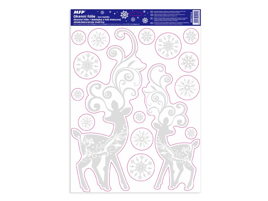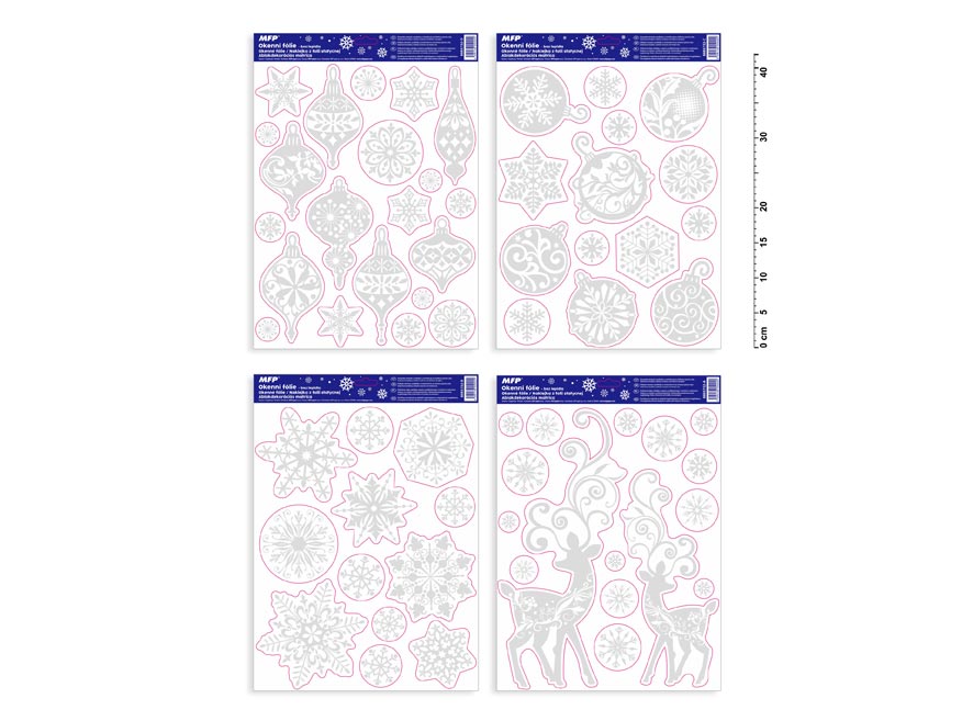 Vánoční okenní fólie s motivy vánočních ozdob s glitrem. Vyzdobte si okno těmito krásnými samolepkami. Vytvoří Vám kouzelnou vánoční atmosféru u Vás doma. Jsou vhodné na jakékoli hladké plochy, například sklo, výlohy, zrcadla nebo kachličky. Čisté, bez lepidla a opakovaně použitelné.