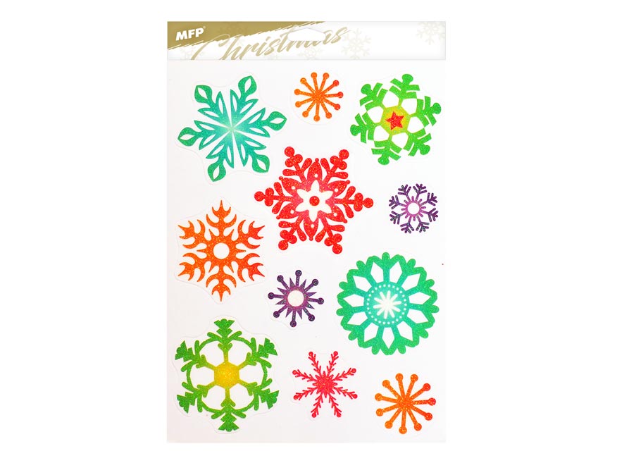 Vámoční okenní fólie glitrová s vánočními motivy v mixu barev. Pomocí okenních fólií si velmi snadno a rychle vytvoříte vánoční atmosféru na celé svátky. Fólie se lehce odlepují a nalepují a nezanechávají za sebou žádné stopy lepidla.
