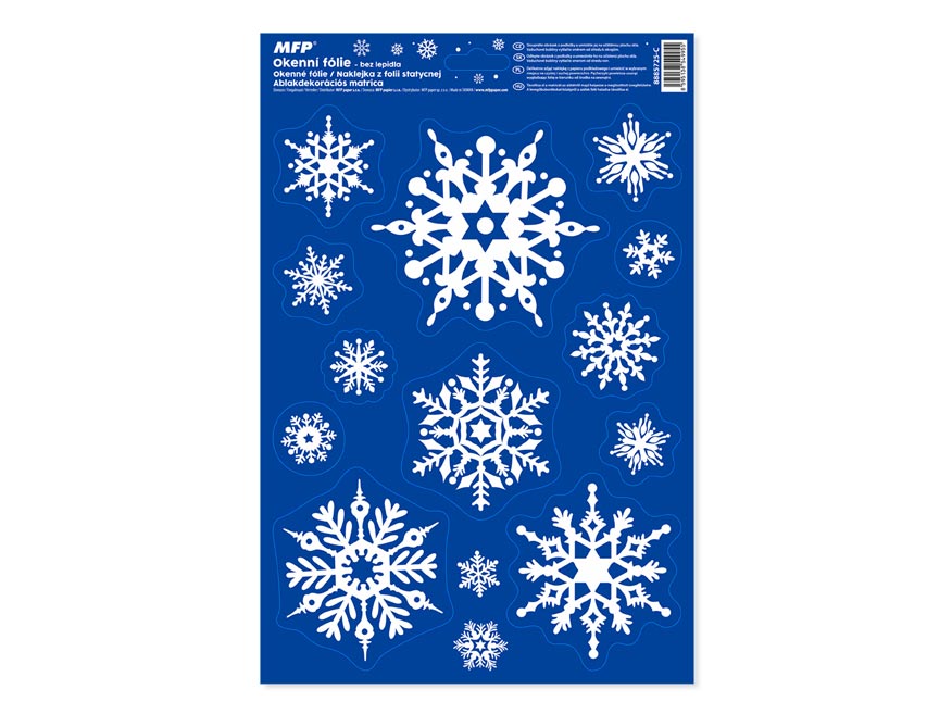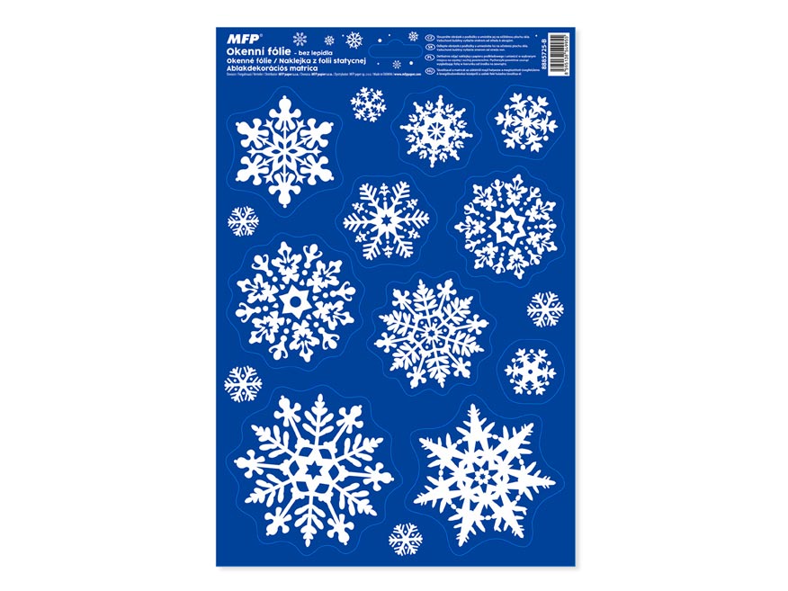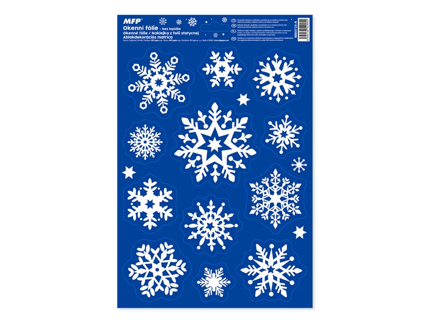 Vánoční okenní fólie bez lepidla s motivy bílých vloček. Vyzdobte si okno těmito krásnými samolepkami. Vytvoří Vám kouzelnou vánoční atmosféru u Vás doma. Vhodné jsou na jakékoli hladké plochy, například sklo, výlohy, zrcadla nebo kachličky. Čisté, bez lepidla a opakovaně použitelné.