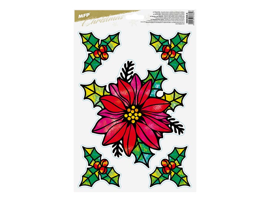 Vánoční okenní folie s vánočními motivy. Pomocí okenních fólií si velmi snadno a rychle vytvoříte vánoční atmosféru na celé svátky. Fólie neobsahuje lepidlo, jednoduše elektrostaticky přilne na čistém okně, zrcadle apod.