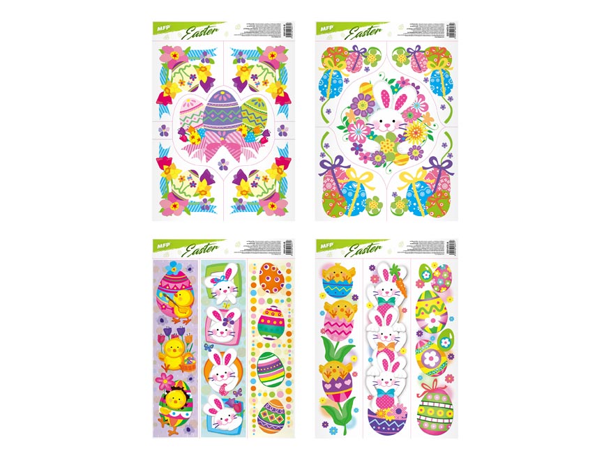Okenní fólie bez lepidla, velikonoční kuřátka, vajíčka, zajíčci. Oslavte svátky jara s těmito krásnými samolepkami na okno. Vytvoří Vám kouzelnou velikonoční atmosféru.