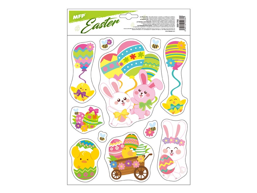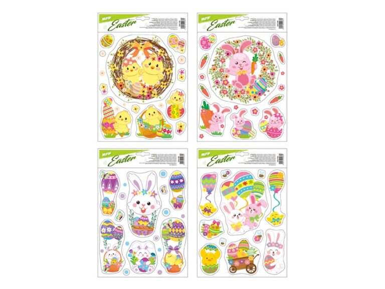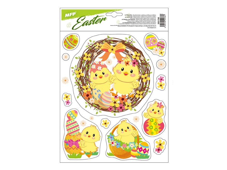 Velikonoční okenní fólie s motivy rozkošných kuřátek, zajíčků, velikonočních vajíček a květin, doplněné jemným třpytem. Fólie snadno přilnou k povrchu okna a lze je snadno opakovaně použít, takže jsou ideální pro dočasné dekorace během Velikonoc. Perfektní doplněk pro každého, kdo chce oslavit Velikonoce a přivítat jaro barevnou výzdobou!