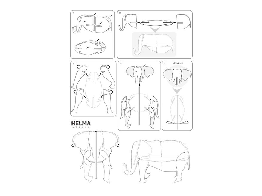 Oiginální papírová 3D skládačka slon k vymalování dle vlastních představ
