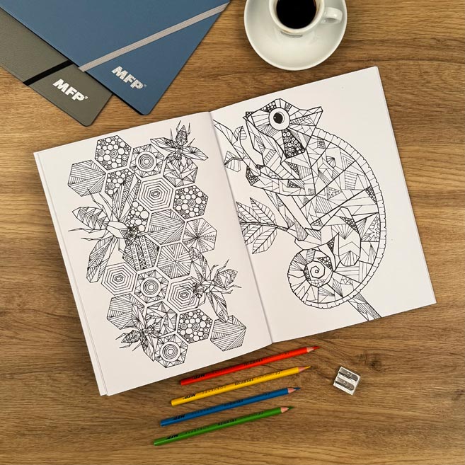Antistresové omalovánky “Život zvířat” jsou ideální pro milovníky přírody, kteří hledají relaxaci a kreativní únik od stresu. Kniha nabízí obrázky zvířat, jako jsou žirafy, jeleni a ptáci, ve stylu geometrických tvarů a ostrých linií. Tento styl podporuje soustředění a uklidnění mysli, přičemž vybarvování pomáhá zbavit se stresu, rozvíjí kreativitu a pomáhá uvolnit tělo i mysl.