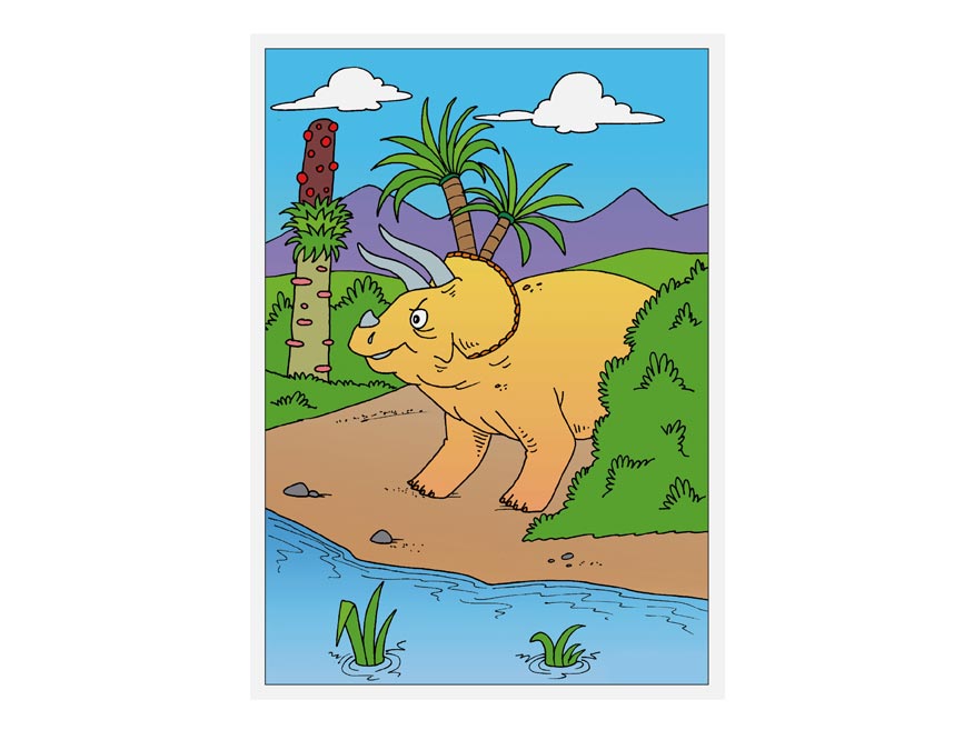 Počet předloh k vymalování: 8 (triceratops, stegosaurus, iguandon, tyranosaurus rex, brontosaurus, pterodaktyl, aj.)
