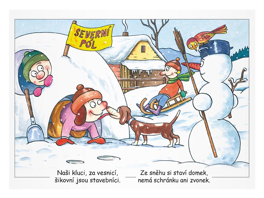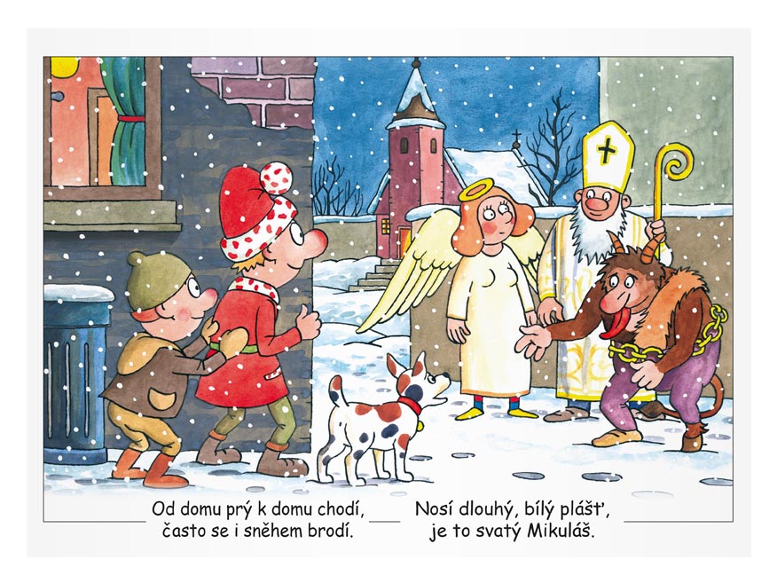 Počet předloh k vymalování: 8 (Tři králové, rozsvícení stromečku, Mikuláš, bruslení, kapr, aj.) – U každého obrázku je Vánoční básnička.