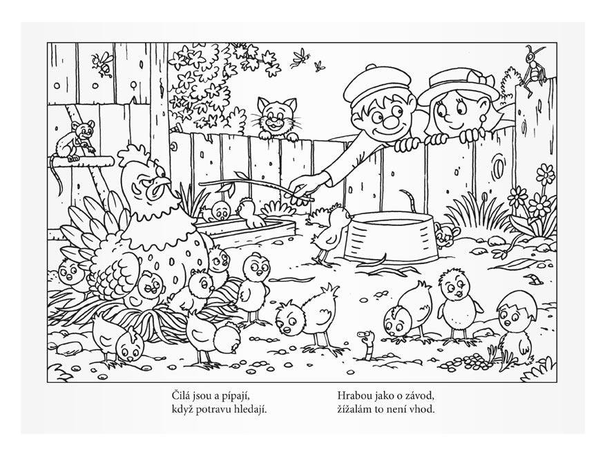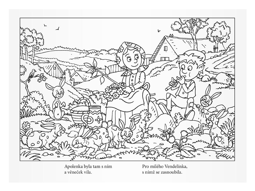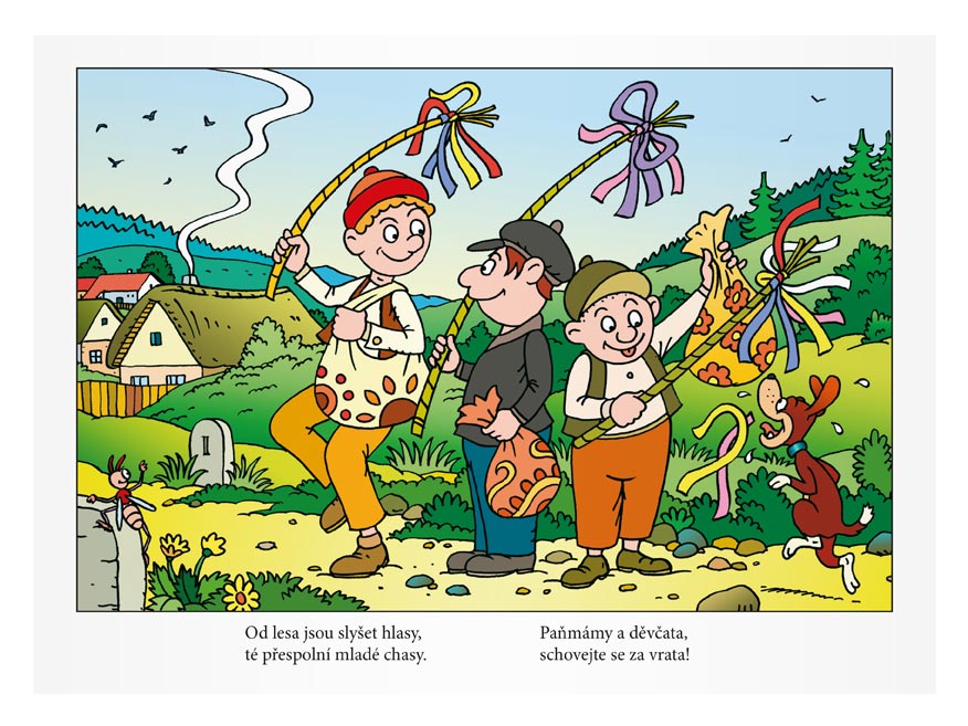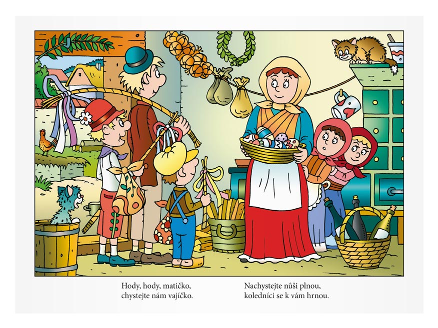 Počet předloh k vymalování: 8 (pomlázka, koledování, klubání kuřátek, aj.) – U každého obrázku je básnička.