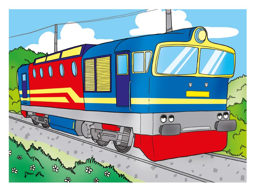 Počet předloh k vymalování: 8 (mašinka, vlak, parní lokomotiva, tramvaj, aj.)