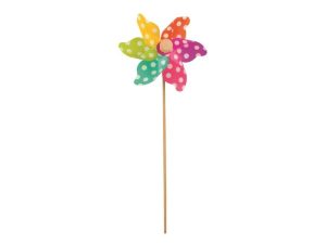 Malý barevný větrník s puntíky, který promění závan větru v hravou podívanou. Stačí ho zapíchnout do květináče, na zahradu nebo balkon a rázem vytvoří příjemnou dekoraci. Součástí je dřevěná špejle pro snadné umístění. Průměr větrníku: 9 cm Uvedená cena je za 1 ks.
