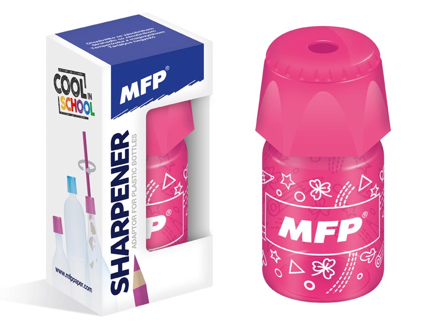 Ořezávátko/strouhátko se zásobníkem, je možno našroubovat na jakoukoliv PET lahev. Vhodné na trojboké, kulaté i šestihranné tužky a pastelky o průměru 6-8 mm. Baleno 1ks v papírové krabičce s výsekem, papírový display – 12 kusů, mix barev, růžová a modrá, v kartonu 216 kusů.