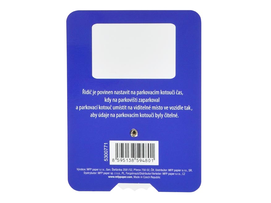 Jednoduše si nastavte na parkovacím kotouči čas příjezdu Vašeho automobilu na parkoviště a umístěte jej viditelně za čelní sklo.