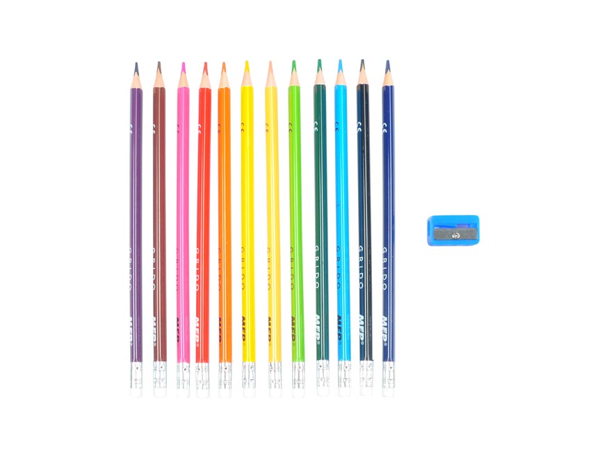 – 12 ks pastelek (žlutá, oranžová, červená, světle růžová, tmavě růžová, fialová, světle modrá, tmavě modrá, světle zelená, tmavě zelená, hnědá, černá)