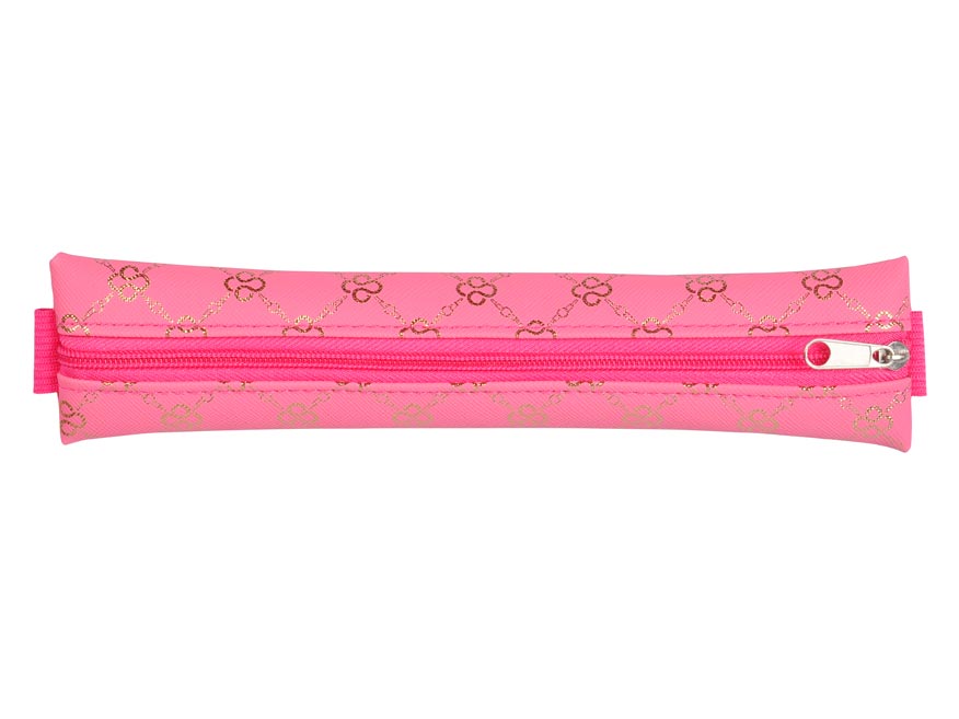 Penál/etue mini v růžové barvě se zlatým vzorem a praktickou gumou. Uprostřed je vybaven zipem, který umožňuje snadné otevírání, a slouží k uložení několika základních psacích potřeb, jako jsou pera, tužky či drobné předměty. Díky praktické gumě lze penál snadno připevnit na obal diáře nebo sešitu, což zajišťuje, že máte psací potřeby vždy po ruce.