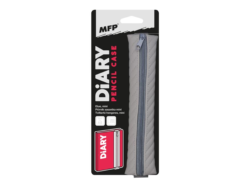 Penál/etue mini v šedé barvě s praktickou gumou. Povrch penálu je prošívaný, což mu dodává elegantní vzhled. Uprostřed je vybaven zipem, který umožňuje snadné otevírání, a slouží k uložení několika základních psacích potřeb, jako jsou pera, tužky či drobné předměty. Díky praktické gumě lze penál snadno připevnit na obal diáře nebo sešitu, což zajišťuje, že máte psací potřeby vždy po ruce.