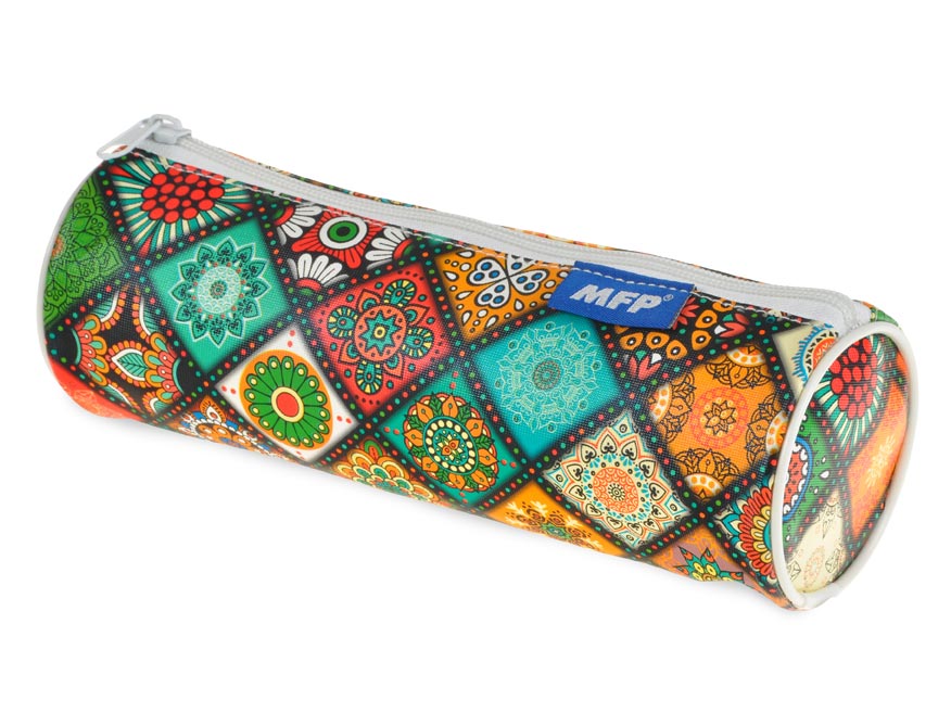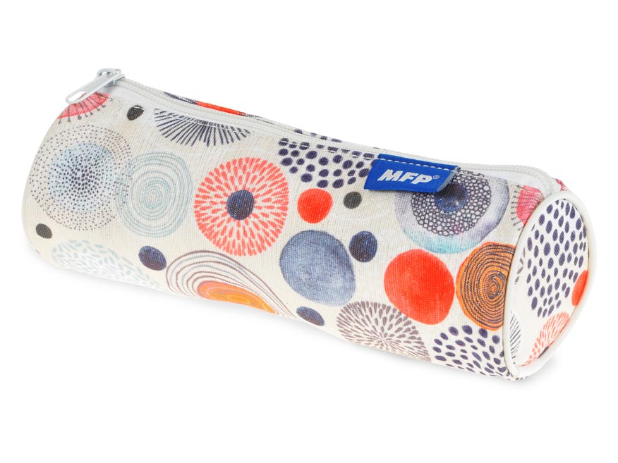 Penál Etue na psací potřeby s jedním zipem – kulatý. Toto školní pouzdro není vybavené. Je vhodné především na pastelky, fixy a další psací potřeby.