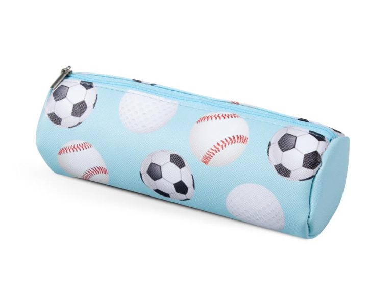 Hledáte praktického a stylového společníka do školy? Modrá válcová etue s motivem sportovních míčů je ideální pro všechny, kteří milují pohyb a hravý design. Nabízí dostatek místa pro psací potřeby i drobnosti, které chcete mít po ruce.