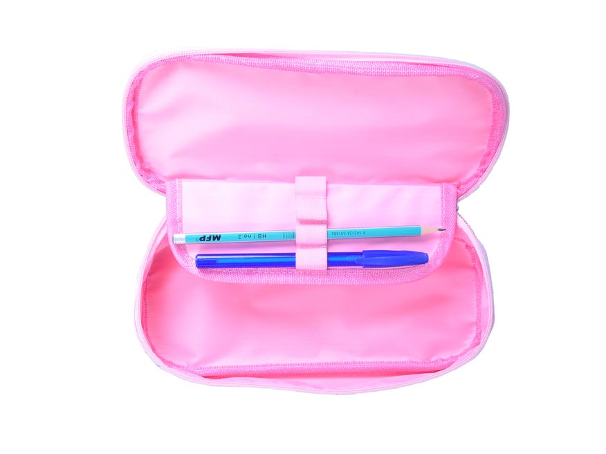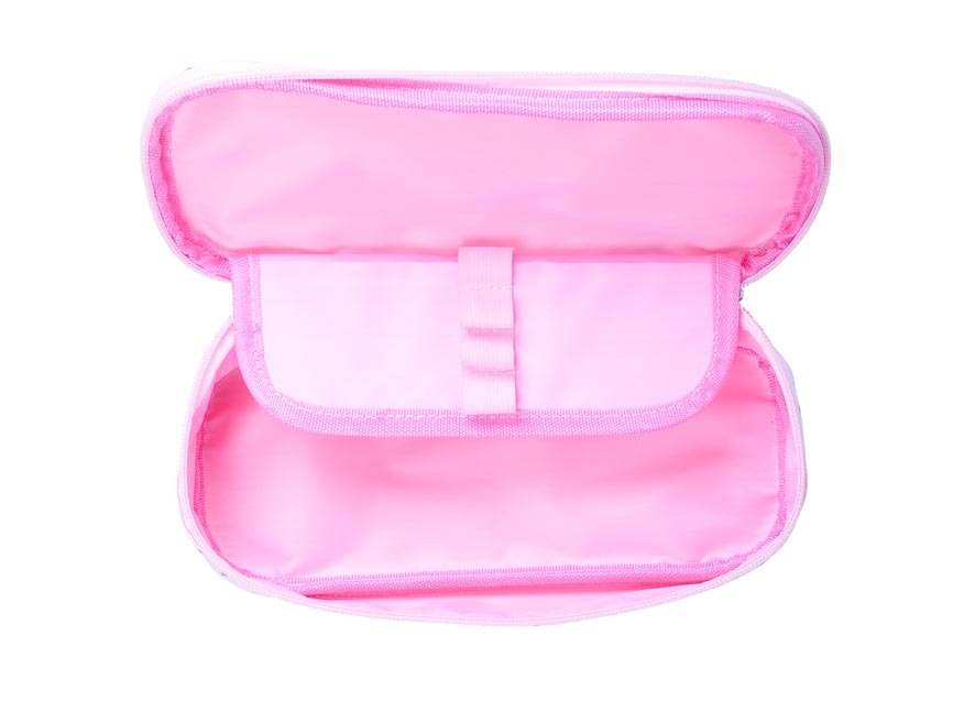 Školní penál s klopou ve světle růžové barvě s barevnými puntíky. Je vhodným doplňkem pro studenty a větší školáky. Uvnitř je dostatek prostoru pro uložení všech psacích potřeb. Velice lehce se uzavírá díky velkému zipu.